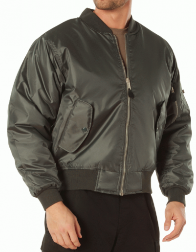 Combat the Cold: Prepare for the elements with our iconic MA-1 Flight Jacket, equipped with warm poly fiberfill for exceptional insulation, keeping you warm in cold conditions. The bomber jacket features a nylon water-repellent outer shell that provides protection from light rain and snow.